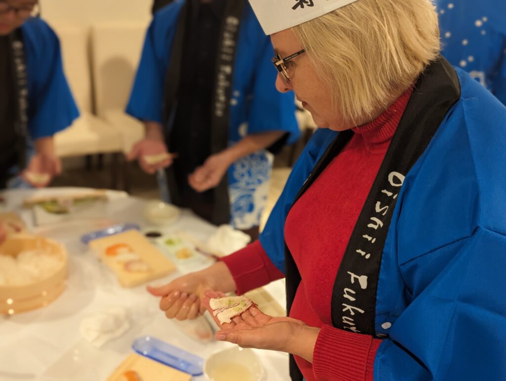 本格寿司職人に学ぶ、博多前寿司教室。コースによって地元漁港の見学も。魚の捌き方の実演、実際に自分たちで作った握り寿司、巻き寿司、軍艦巻きを食べるお食事付。